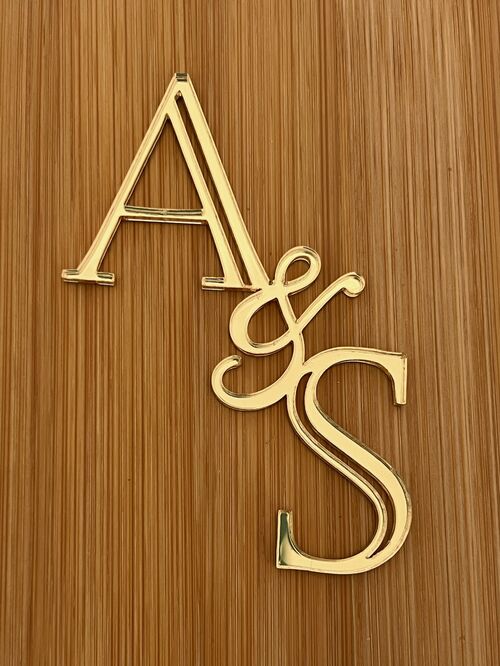 Dale un toque elegante y personalizado a tu tarta con este sofisticado caketopper de iniciales entrelazadas.